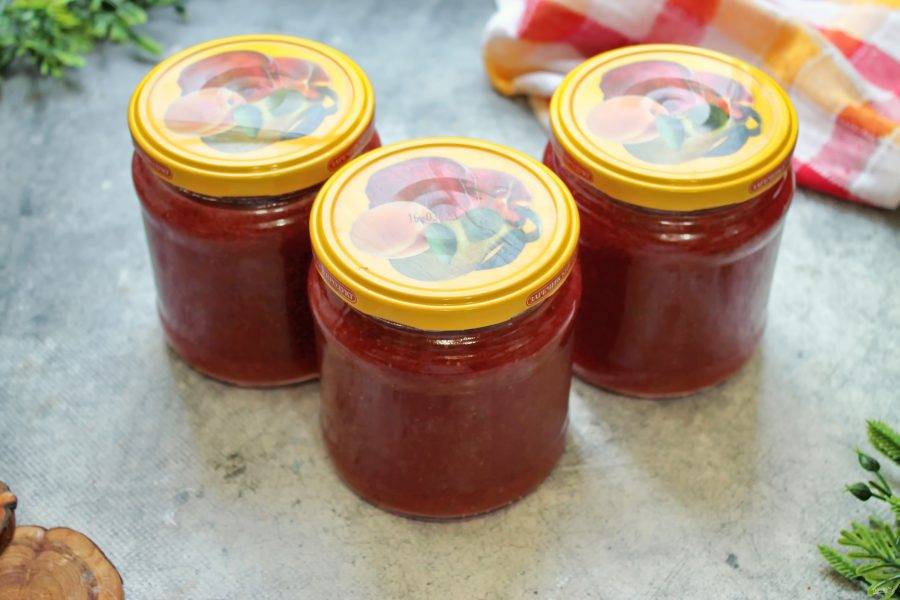 Разложите готовое варенье по подготовленным банкам, плотно закройте и переверните вверх дном. Оставьте банки в таком положении до полного остывания, а затем уберите на хранение.