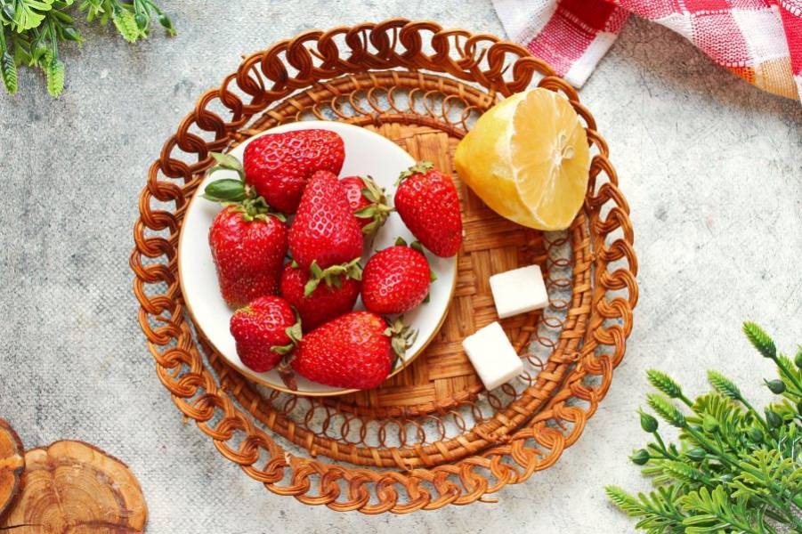 Подготовьте все необходимые ингредиенты для приготовления варенья из клубники с лимоном.