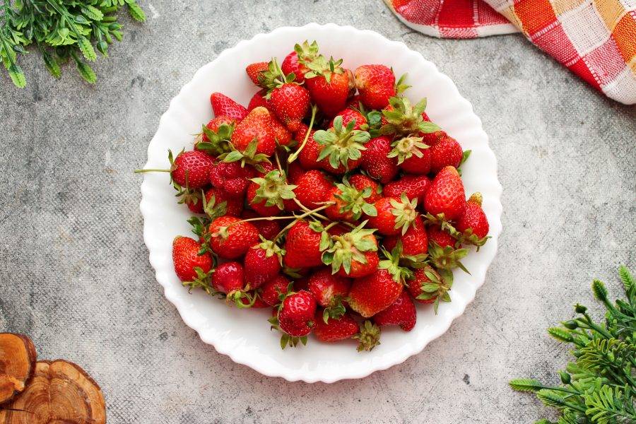 Клубнику переберите, удаляя порченые ягоды. Выложите в сито и вымойте под проточной водой, дайте жидкости полностью стечь.
