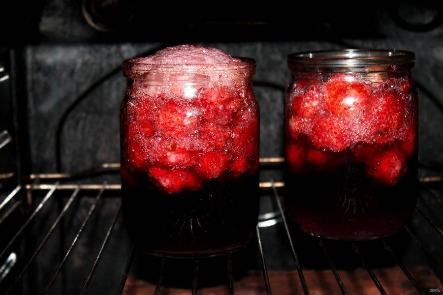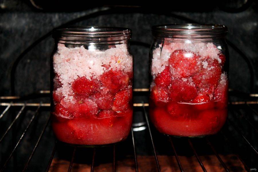 Спустя время достаньте готовое варенье из духовки, дополните банки до верха, используя одну из банок. Дайте варенью полностью остыть, плотно закройте и уберите на хранение.