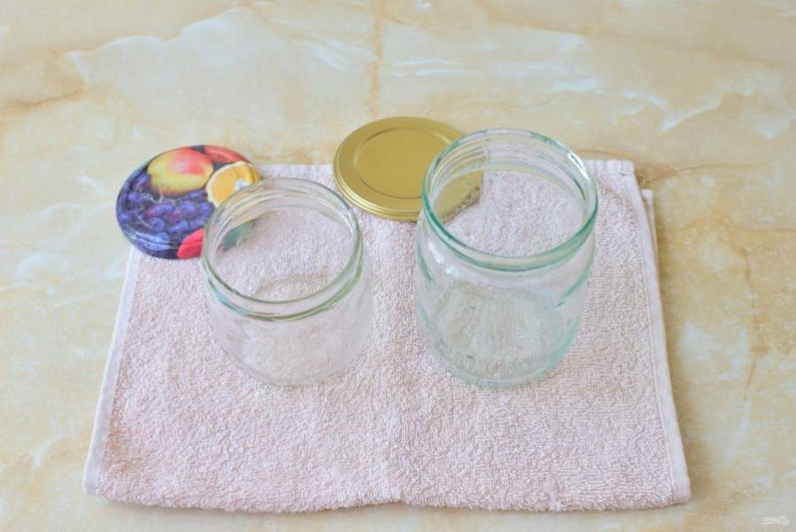 Подготовьте банки. Тщательно их помойте и ополосните. Простерилизуйте любым удобным для вас способом. Это можно сделать в микроволновой печи, в духовке или над горячем паром. Крышки обдайте кипятком.
