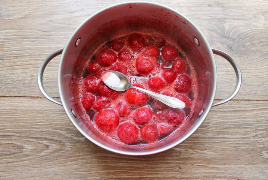 Варите на среднем огне, перемешивая, в течение 15 минут. При необходимости снимите образующуюся пену.