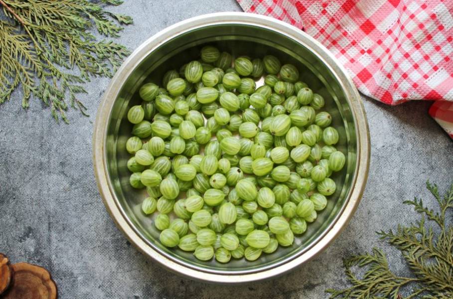 У крыжовника удалите с двух сторон хвостики, и проколите ягоды зубочисткой в нескольких местах.