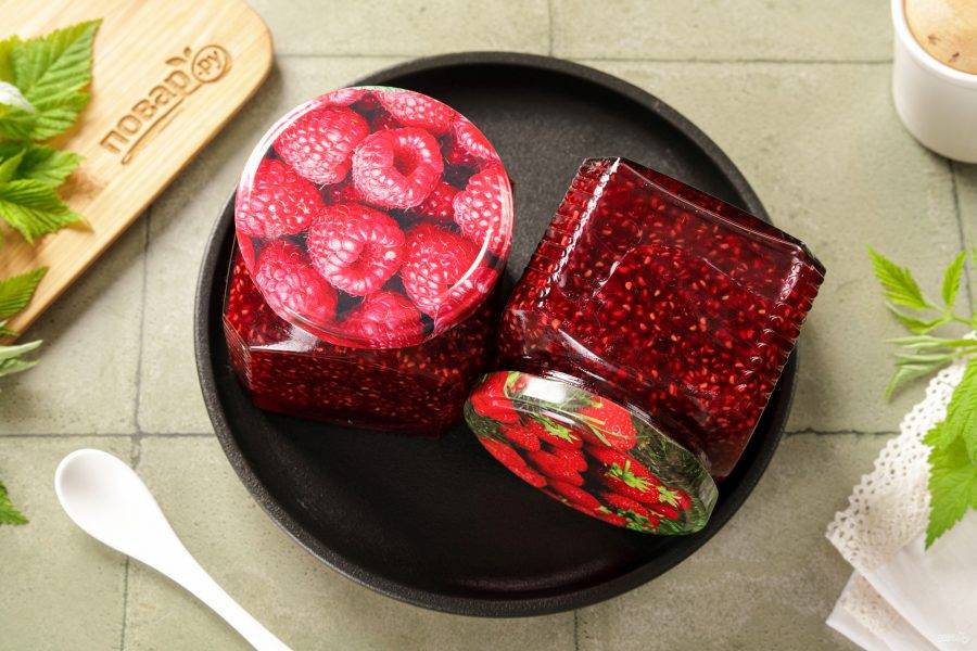 Горячее варенье из малины разлейте по банкам и закрутите крышками.