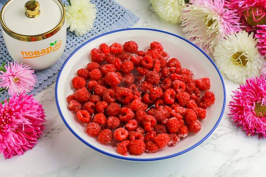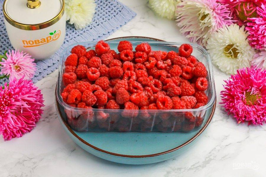 Подготовьте указанные продукты. Приобретите не слишком сочную малину, крупную, отлично держащую свою форму.