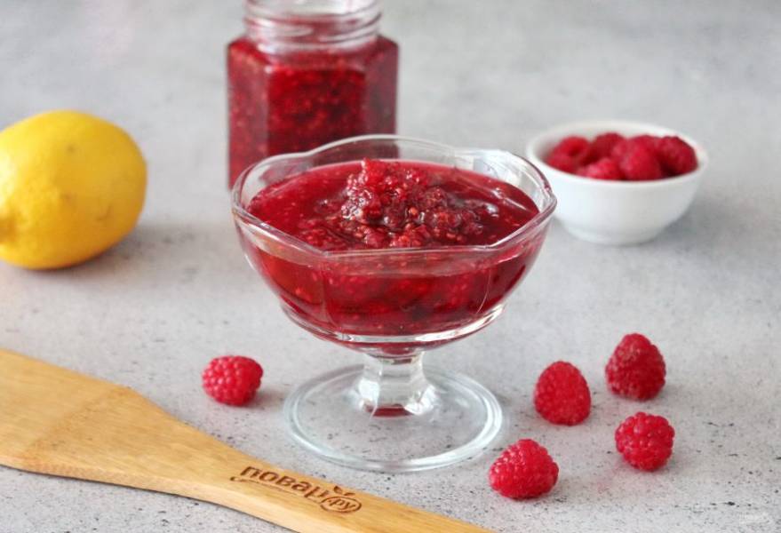 Малиновое варенье с лимоном готово. Подавайте на десерт.