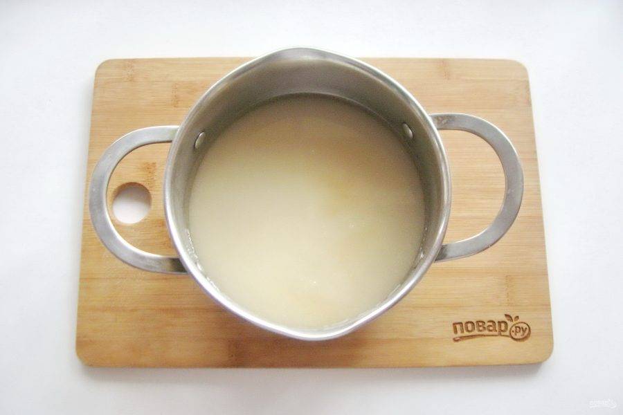 Поставьте кастрюлю на плиту. Постоянно перемешивая доведите сахар до полного растворения.