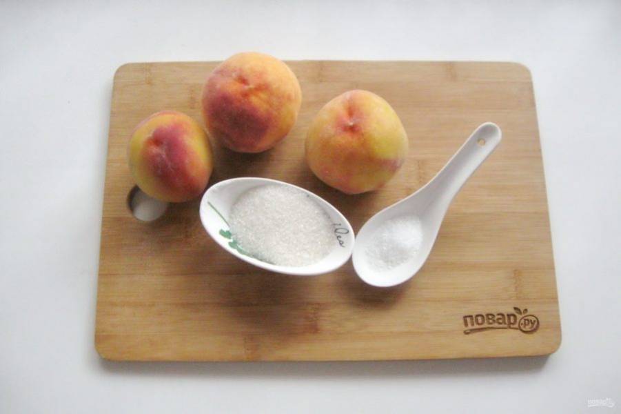 Подготовьте ингредиенты для приготовления варенья из персиков.