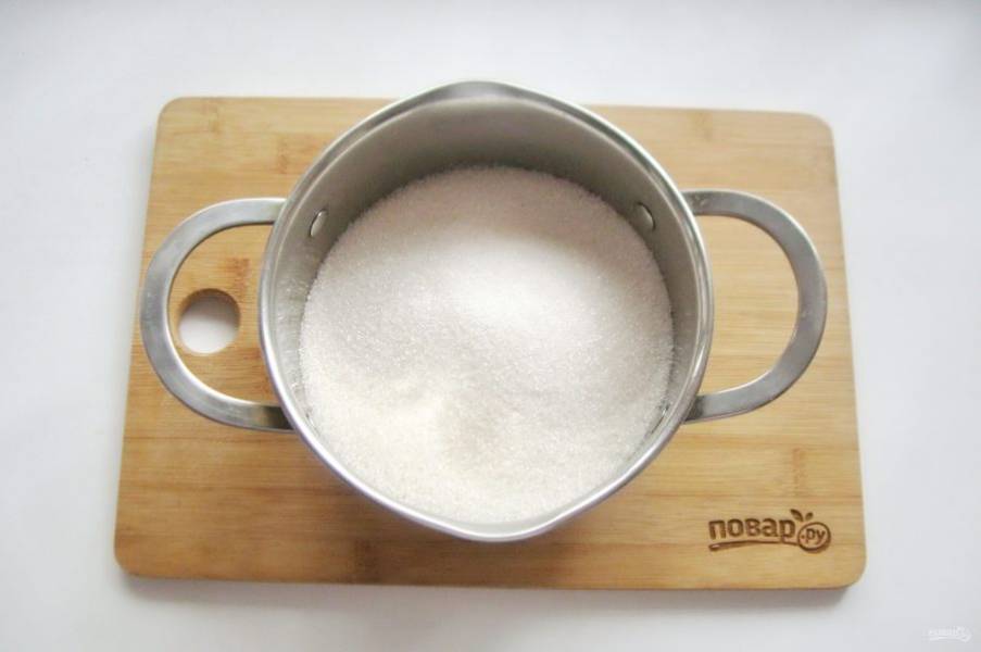 Сварите сироп. В кастрюлю с толстым дном насыпьте сахар.