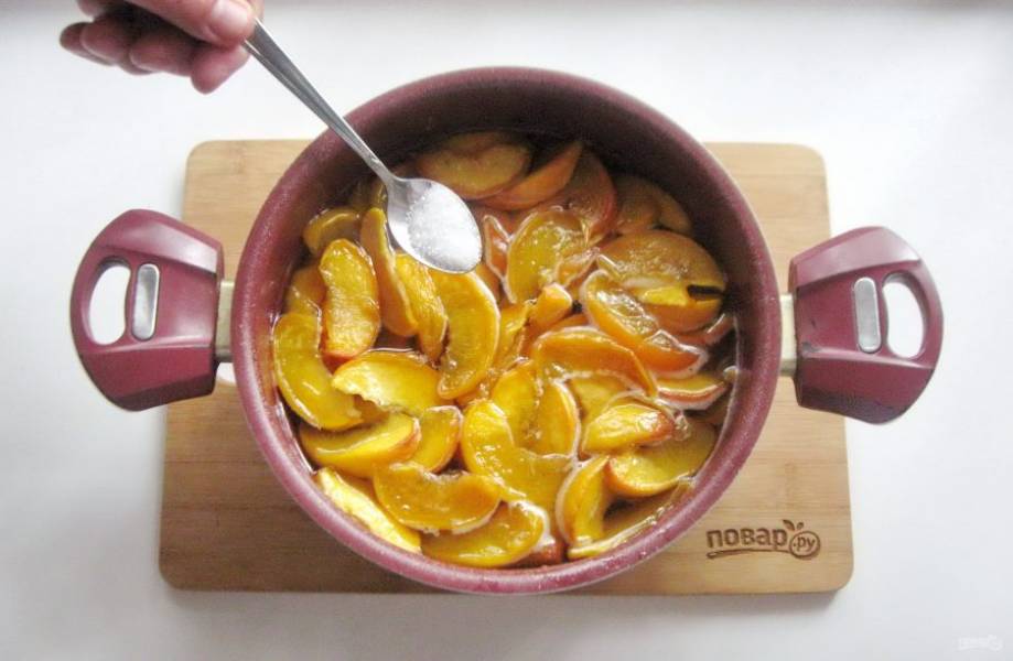 Снова проварите персики 10-15 минут. Добавьте лимонную кислоту.