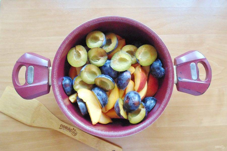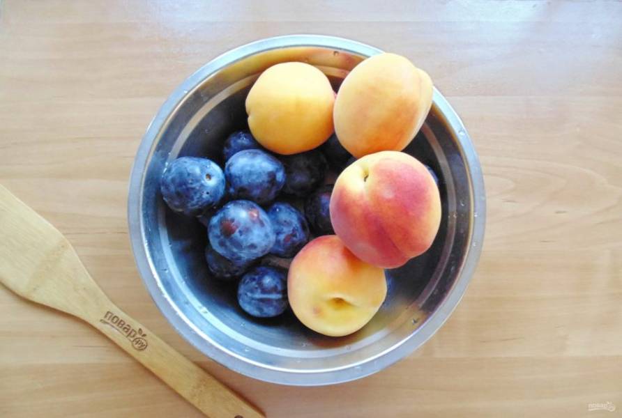 Персики и сливы хорошо вымойте. С персиков смойте поверхностный "пушок".