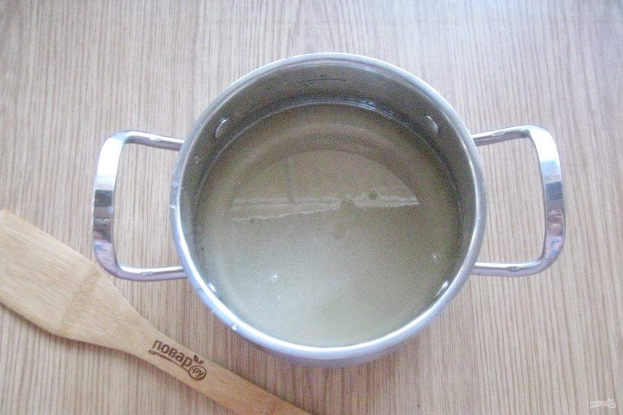 Приготовьте сироп. В кастрюлю с толстым дном насыпьте сахар.