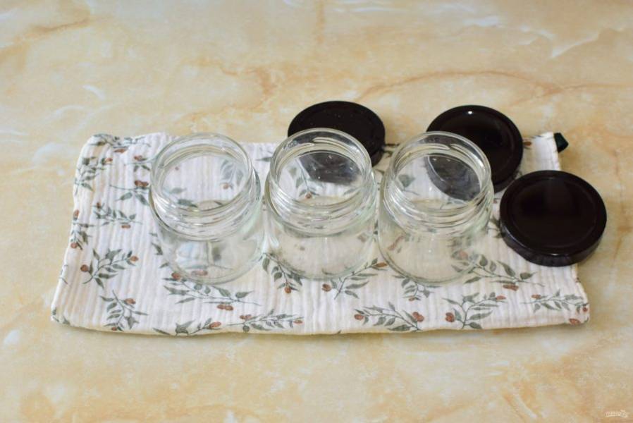 В это время подготовьте банки. Тщательно их промойте и простерилизуйте любым удобным способом. Это можно сделать в микроволновой печи, в духовке или над горячим паром. Крышки обдайте кипятком.
