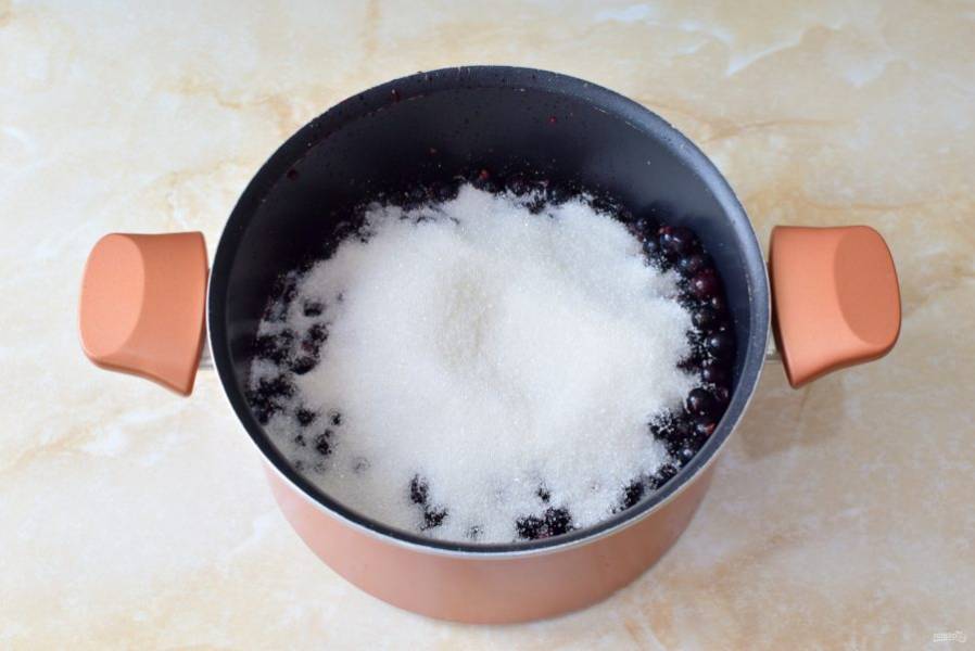 Ягоды переберите от веточек и листиков. Затем хорошо промойте. Выложите черную смородину в кастрюлю.