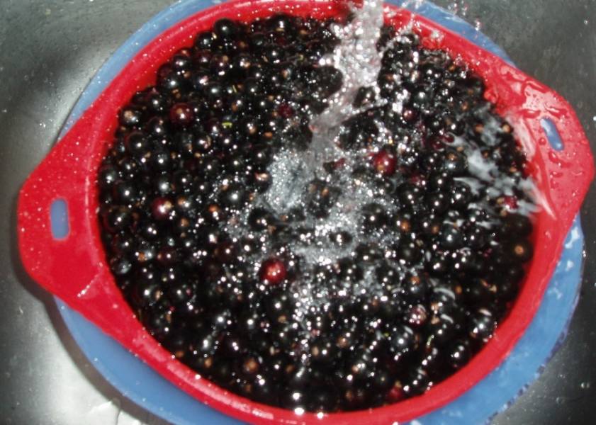 Для начала нам, конечно же, нужно перебрать ягоды, удалить плодоножки и промыть смородину под холодной водой.