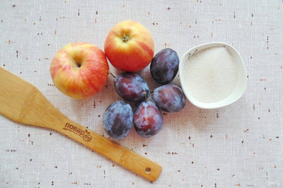 Подготовьте ингредиенты для приготовления варенья из слив и яблок.