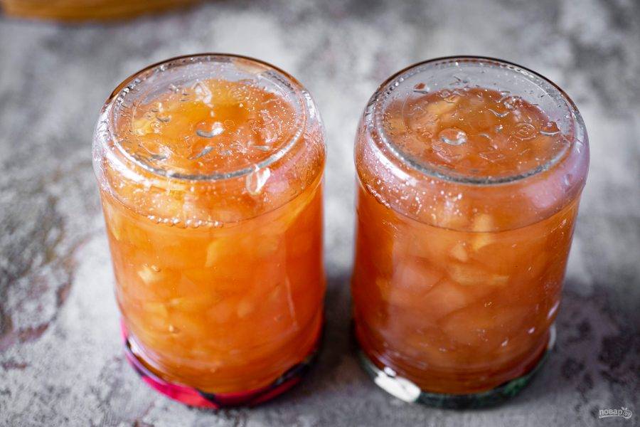 Разложите горячее варенье по стерилизованным баночкам, герметично укупорьте их крышками.
