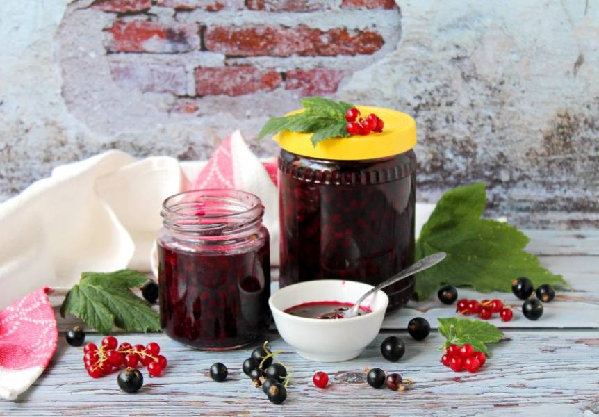 Черная и красная смородина хоть и из одного семейства, но совершенно разные по вкусу. А если их соединить и сварить варенье, получится вкусное, гармоничное по вкусу лакомство.