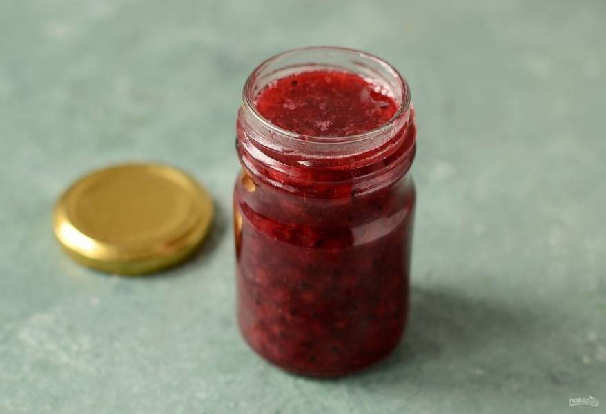 Переложите варенье в чистую стерилизованную баночку. Переверните верх дном, укутайте в полотенце и оставьте так до полного остывания.