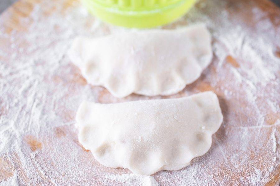 Затем очень аккуратно сформируйте вареник и придавите края пальцами (как на фото) — завернуть края теста и закрепить, как обычно формуют классические вареники, наверное не получится.