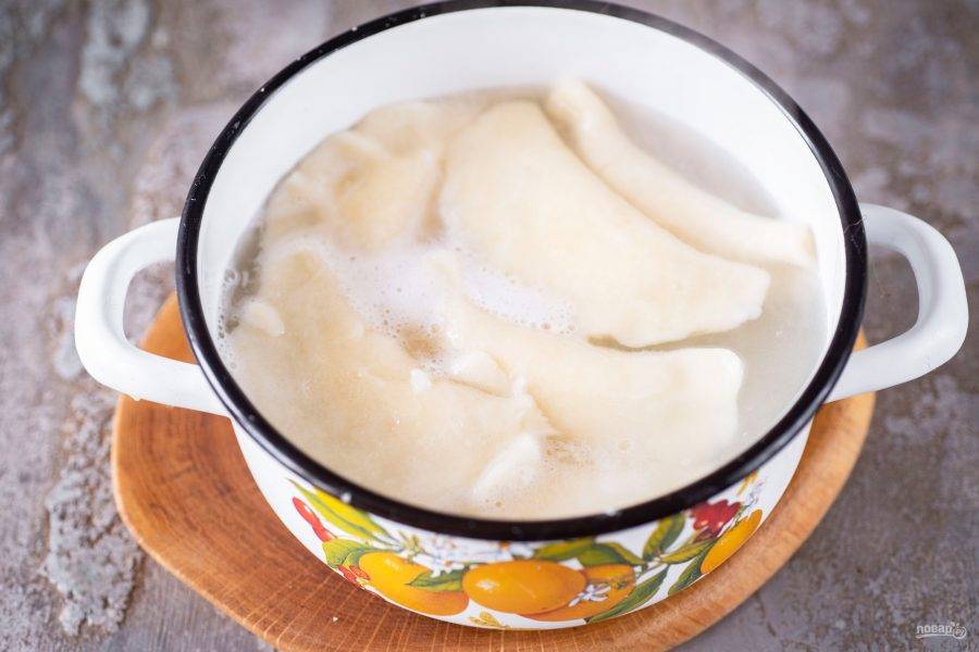 После того, как подготовите все заготовки вареников, ставьте кастрюлю с водой на средний огонь, дождитесь закипания и выкладывайте аккуратно все вареники — варите 5-8 минут.