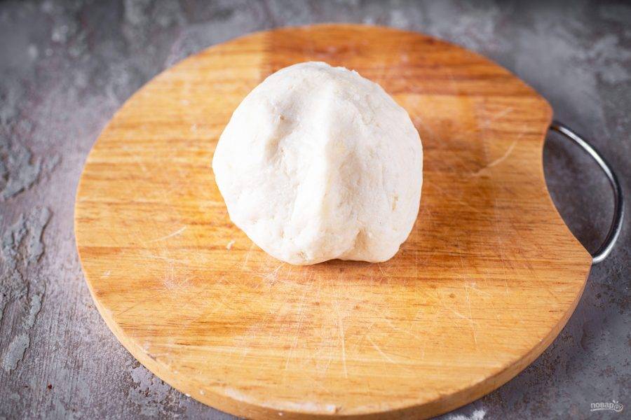 Добавляя к вязкому рисовому тесту по чуть-чуть рисовой муки доведите тесто до консистенции мягкого и пластичного.