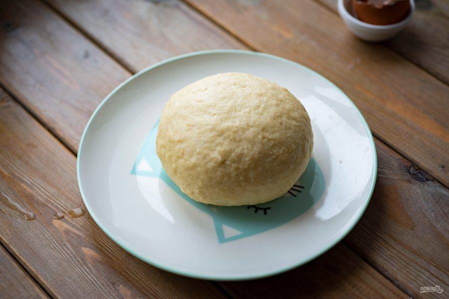 Замесите мягкое, не прилипающее к рукам тесто, округлите его в миске, накройте кухонным полотенцем и оставьте в условиях теплой кухни на полчаса. Возможно для достижения правильной структуры теста вам потребуется чуть больше муки — корректируйте это количество самостоятельно.