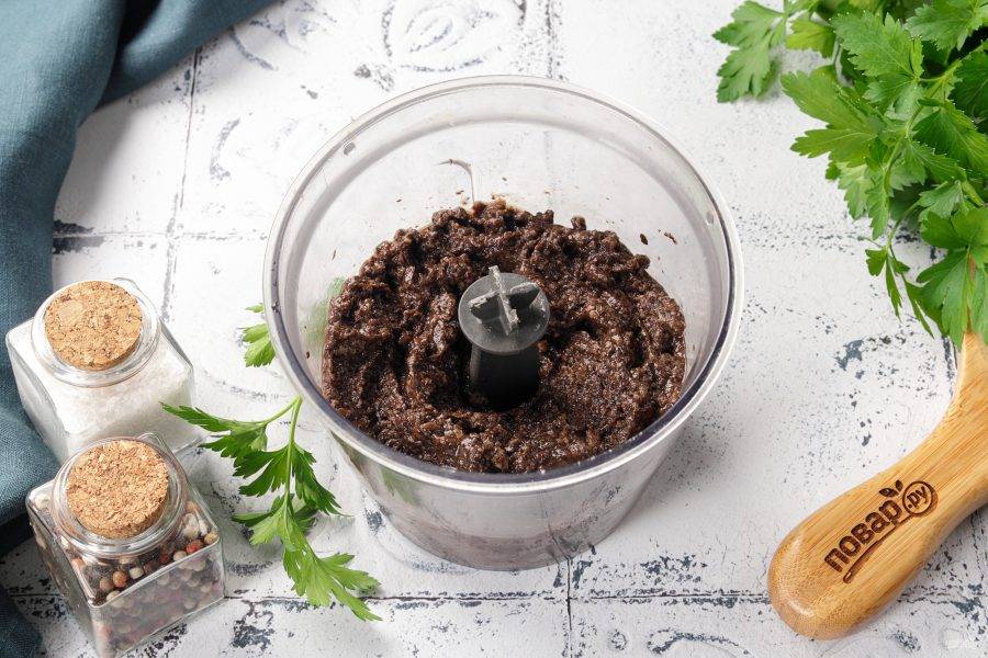 Грибы прокрутите через мясорубку или измельчите в блендере.