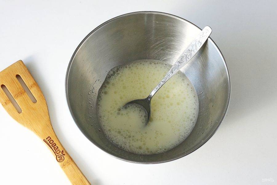 Налейте воду в глубокую миску, добавьте яйцо, соль, 1 ст.л. растительного масла. Все немного взбейте.