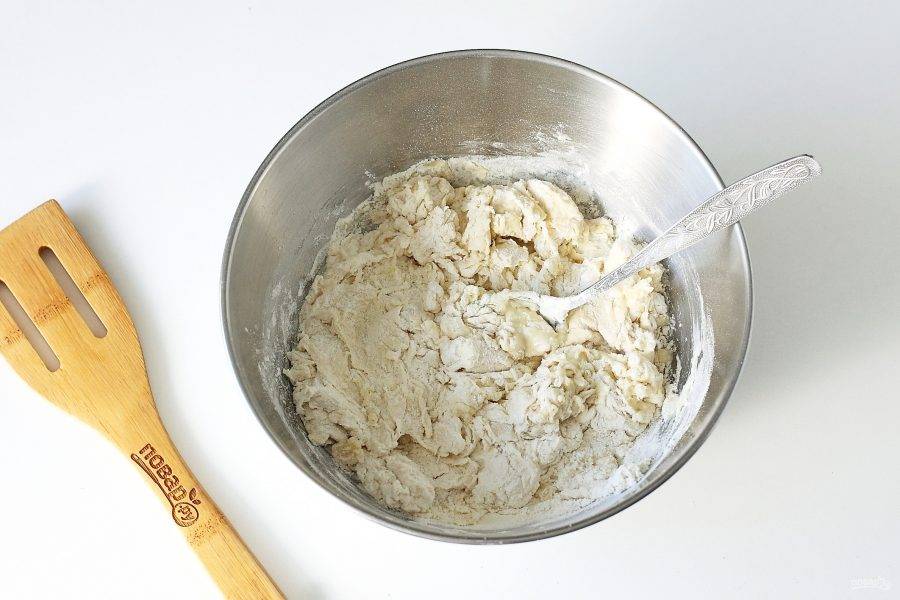 Замесите упругое и эластичное тесто, соберите его в шар, накройте полотенцем и оставьте на 20 минут.
