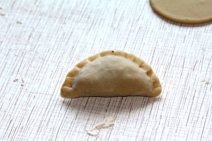 В середину каждого кружочка выкладываем начинку из квашеной капусты.