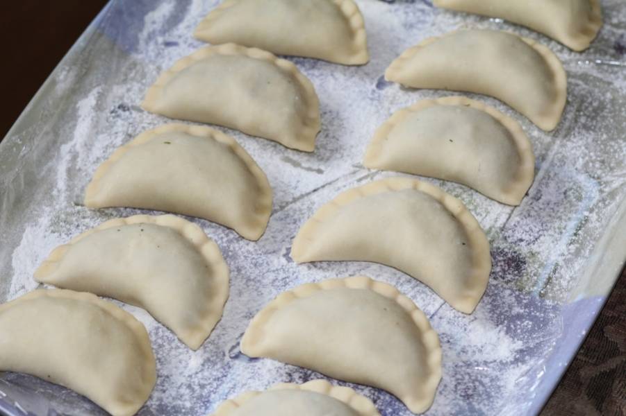 Теперь нам остается только сварить вареники или же заморозить их в морозильной камере.