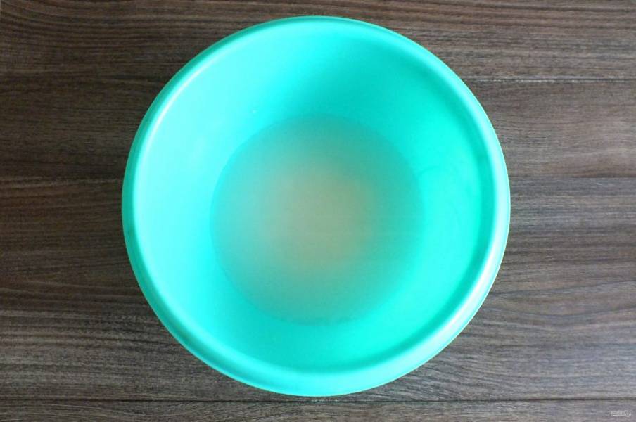 В теплой воде соедините дрожи, соль и сахар. Оставьте на 10 минут.