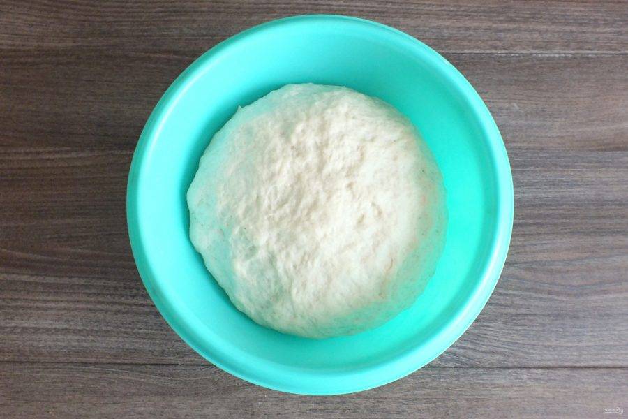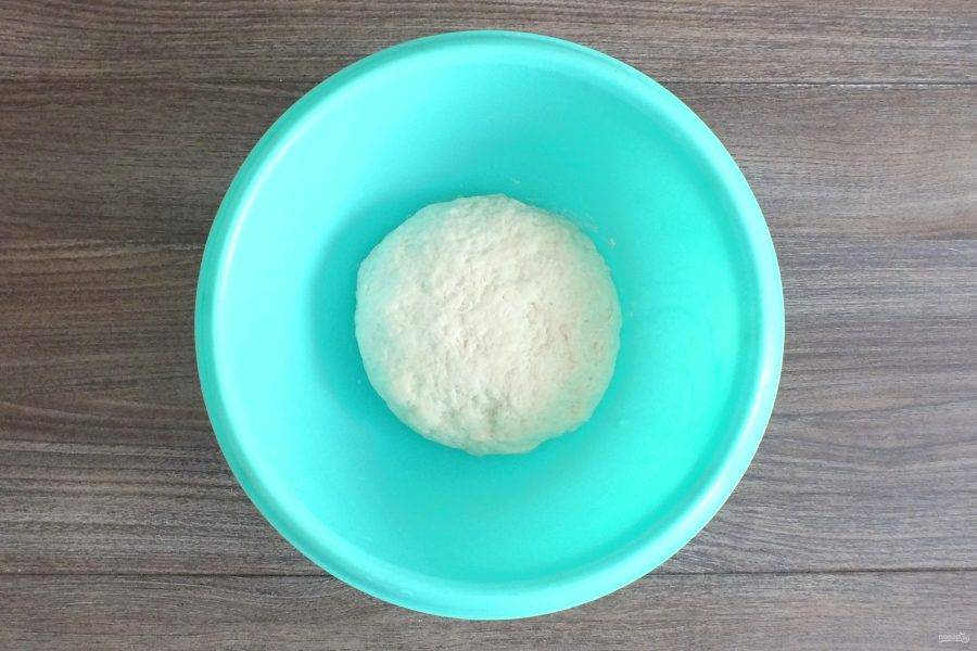 Готовое тесто должно получиться мягким, хорошо держать форму. Округлите его, выложите в чашу. Прикройте полотенцем. Оставьте в теплом месте на 1 час.