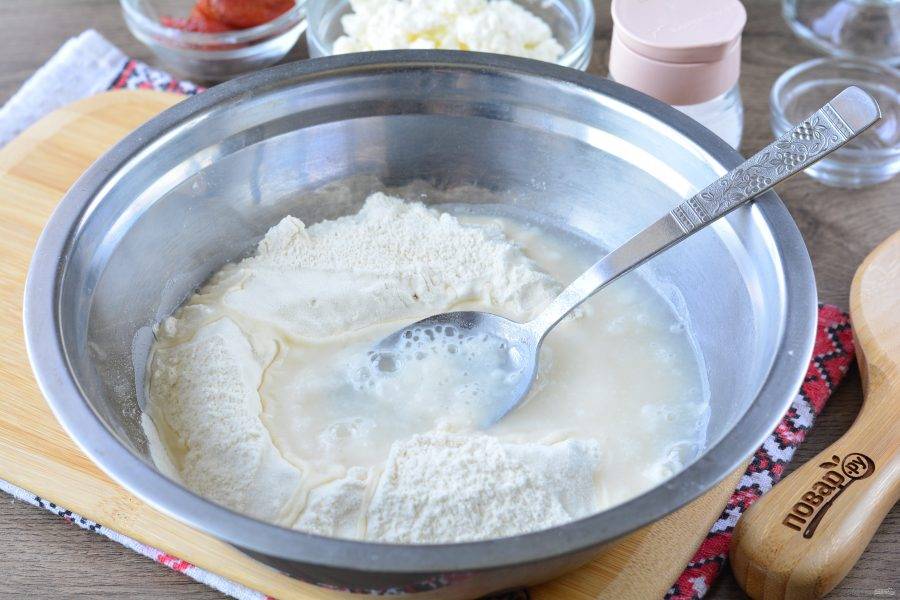 Замесите мягкое тесто, дайте постоять 15 минут, выделится клейковина.