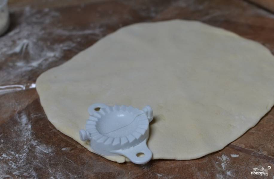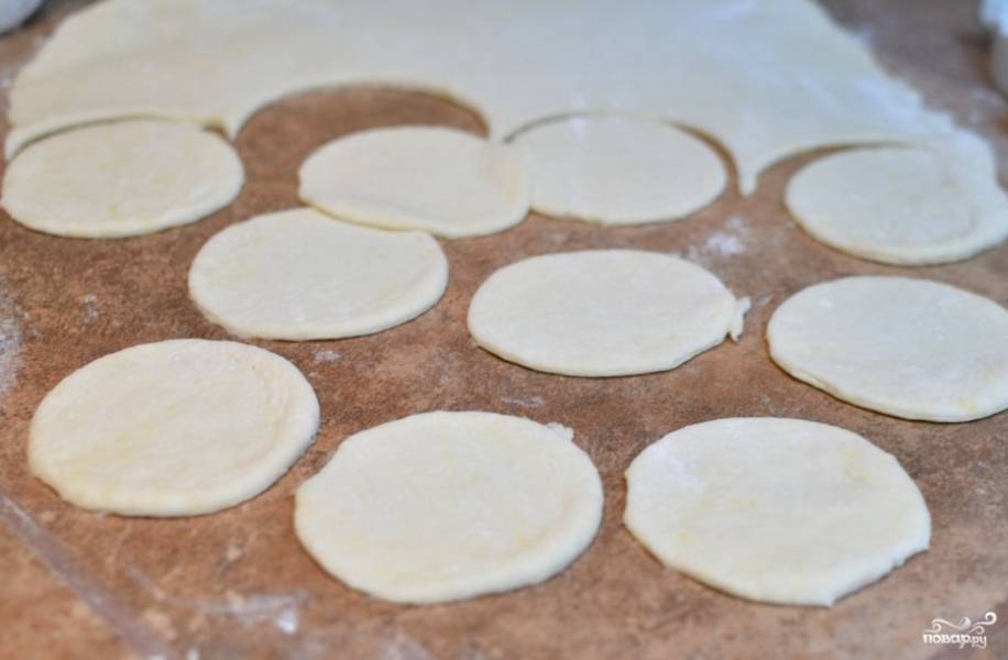 Раскатываем тесто и формируем одинаковые кружочки. Можно это делать при помощи обычного стакана.