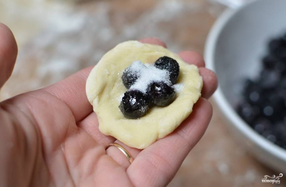 В центр каждого кружочка кладем начинку. Чем больше начинки, тем вкусней!