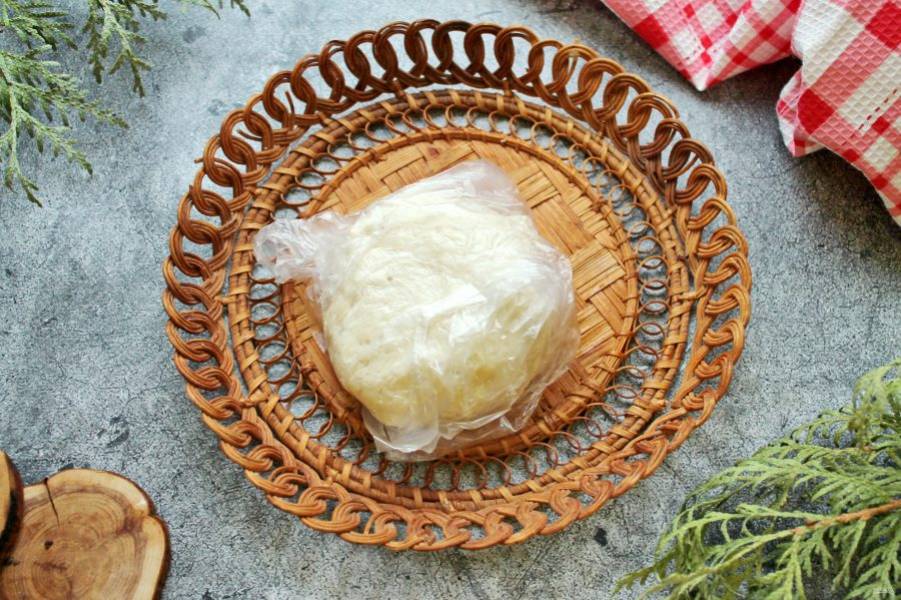 Смешайте муку, теплую воду и растительное масло. Замесите плотное тесто, положите в пакет и дайте ему полежать 10 минут.
