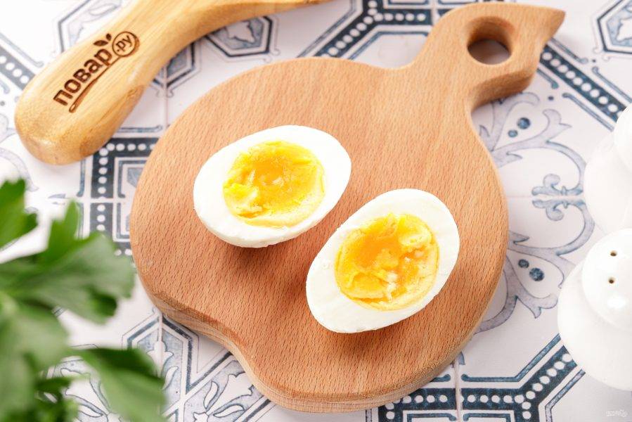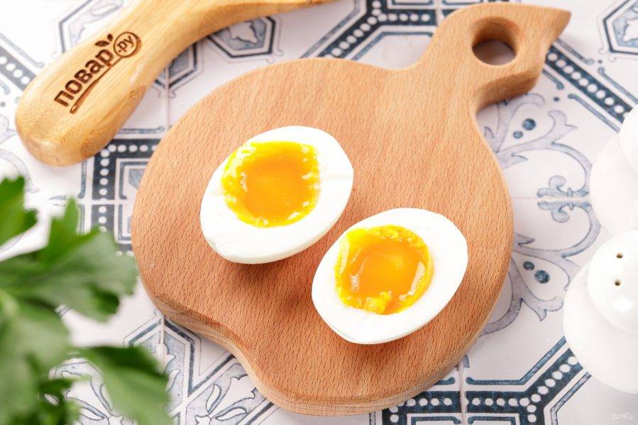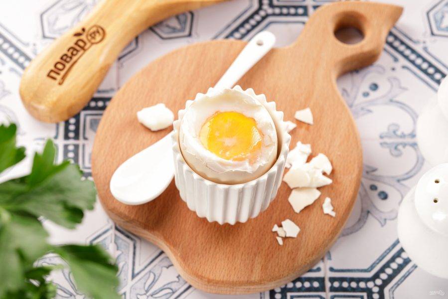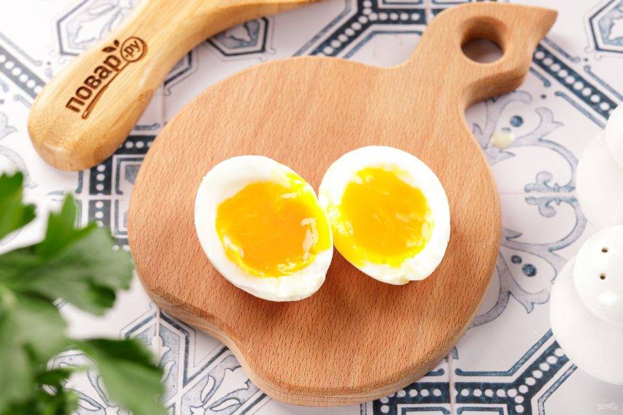 Если опустить яйцо в кипяток на 5 минут — получится полужидкий желток и нежная белая белковая масса.