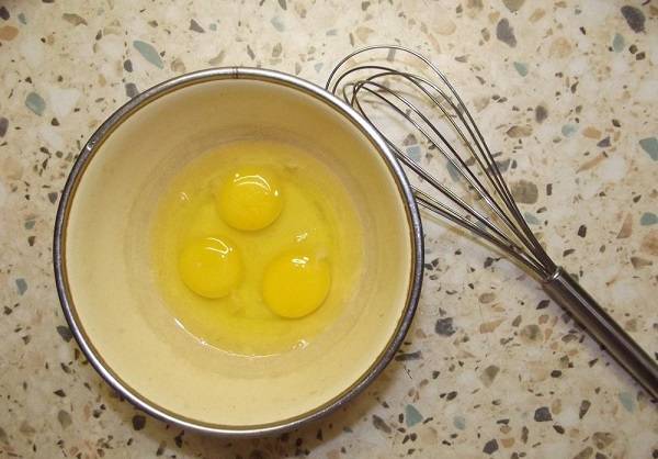 2. С помощью венчика или миксера начать взбивать яйца до появления пенки. Рецепт приготовления вареного омлета в пакете на этапе подготовки не отличается от классического варианта. Добавить в процессе щепотку соли. При желании можно добавить любимые специи, ароматные травы или свежую зелень.