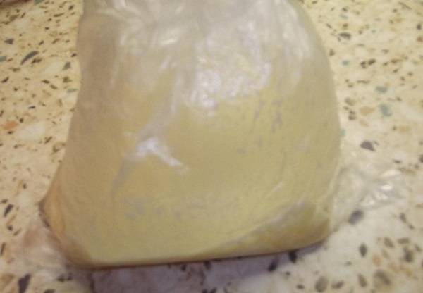 4. Теперь необходимо подготовить обыкновенный полиэтиленовый пакет или рукав для запекания. Аккуратно перелить яичную массу в него и плотно закрепить верх. Края должна быть скреплены хорошо, чтобы в процессе варки омлет не вытек.