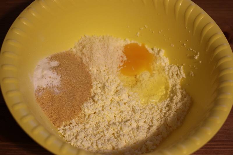 3. Смешать творог, яйцо, сахар, кокосовую стружку и ванилин.