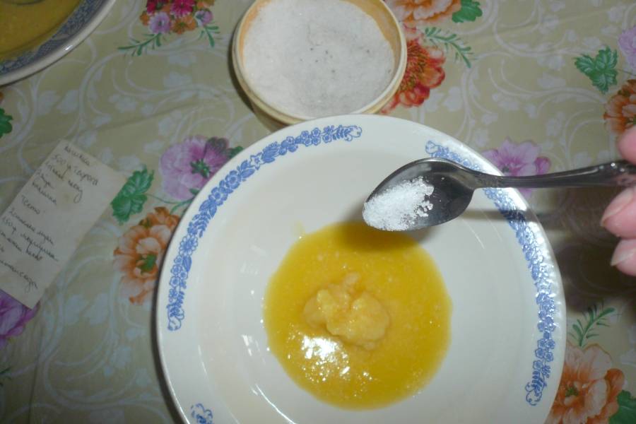Готовим тесто на ватрушку: в маргарин добавляем соль