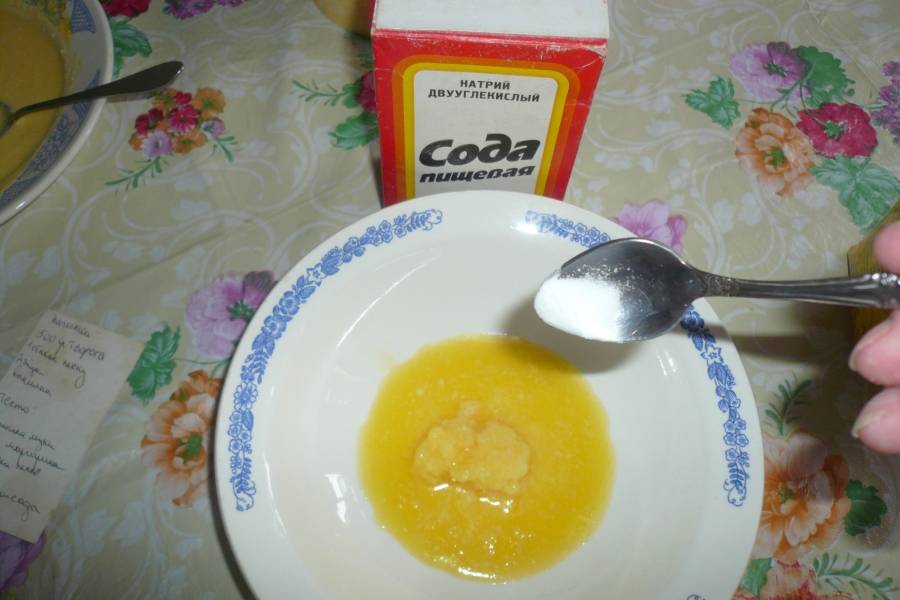 - Сода 1 ч. ложка 0,5 чайной ложки (тесто)
