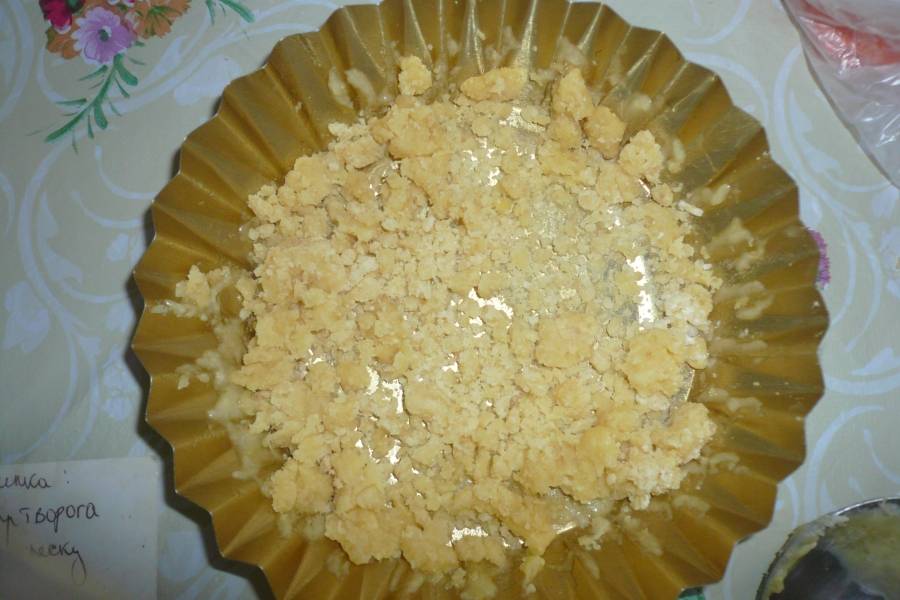 Готовим начинку: творог, сахар "Мистраль", яйцо, ванилин перемешиваем