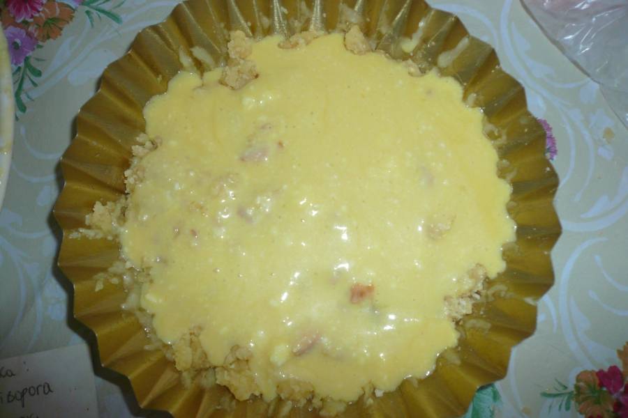 Заливаем начинкой и отправляем в духовку при 180 С на 20-25 минут.