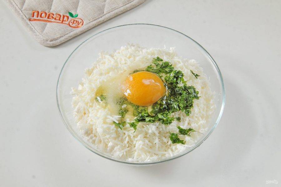 Любую измельченную свежую зелень, яйцо и немного соли.