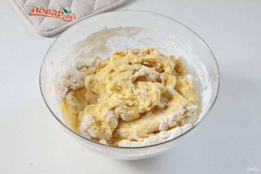 Замесите тесто, соберите его в шар, накройте пленкой и уберите в теплое место.