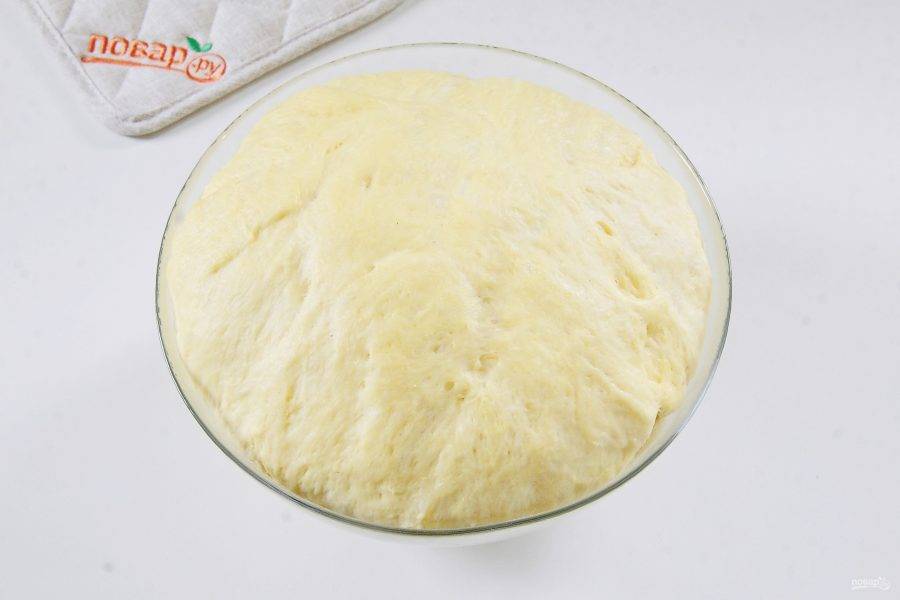 Оставьте тесто для подъема на 4 часа. За это время обомните его 2-3 раза, когда оно будет подниматься.