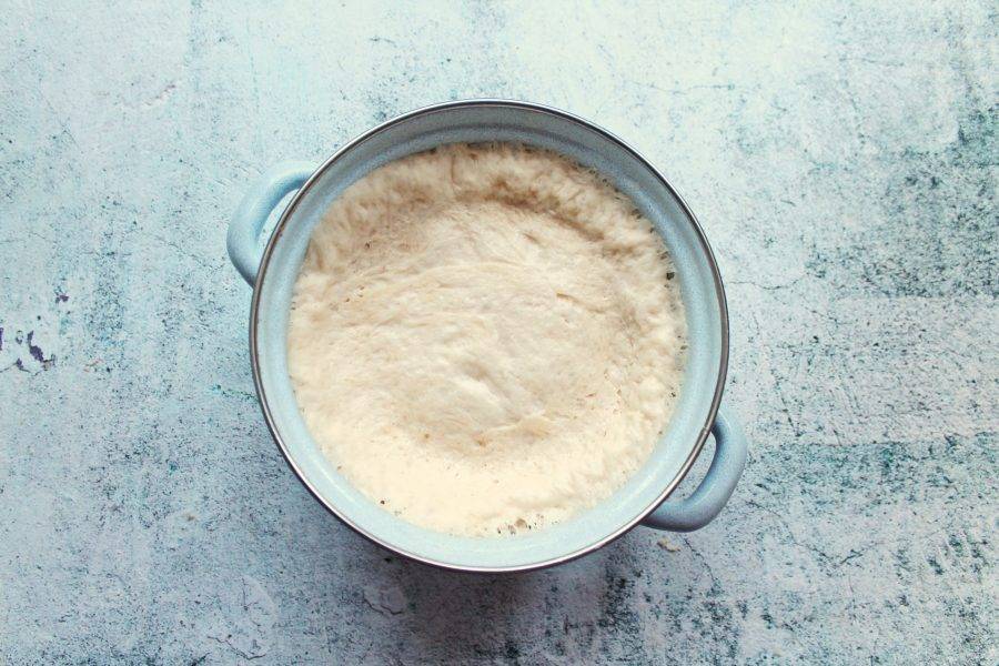 Накройте тесто и оставьте в теплом месте на 2.5 часа для подъема в 2-3 раза.
